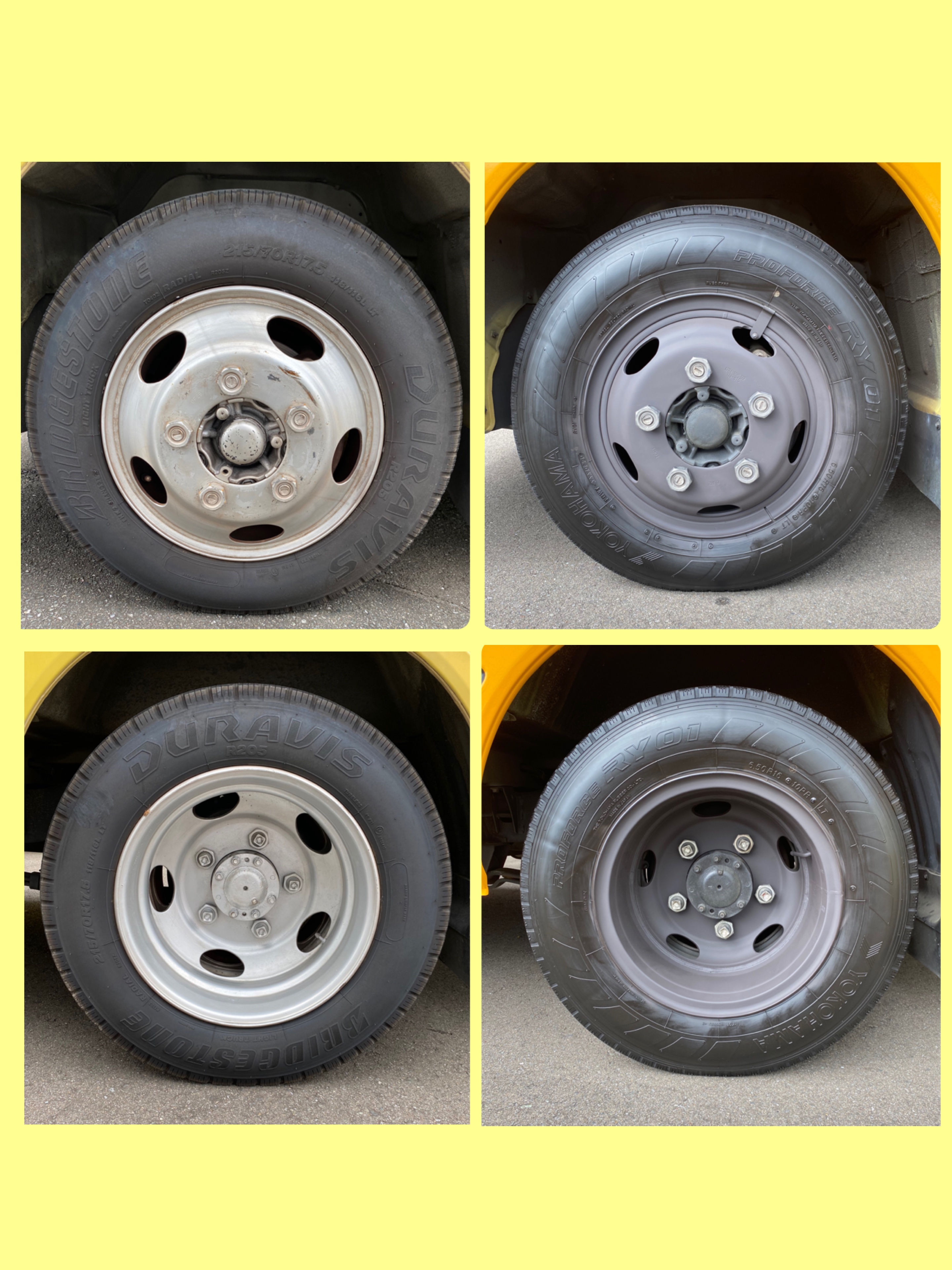 最後にタイヤホイールに塗装を施し、(左が塗装前・右が塗装後)バスに組み付けて完成です。