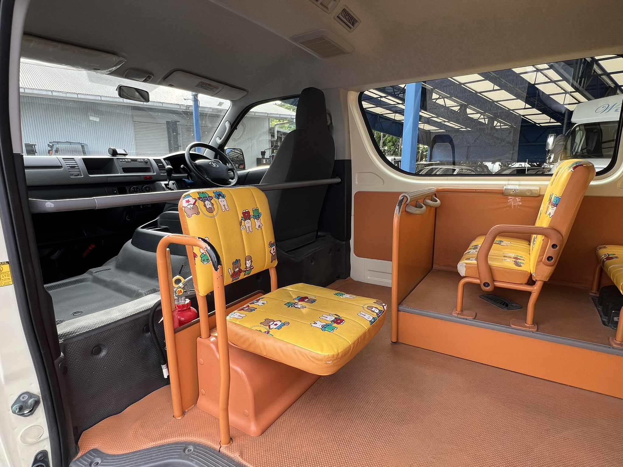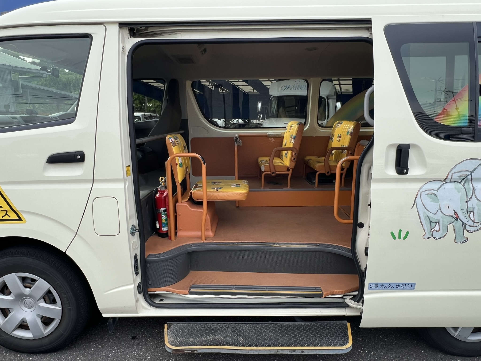 このバスは、園児さん12名と大人2名が乗れる、ちょうどいいサイズのバスなんです!